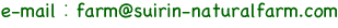 | 380-0888 長野県長野市大字上ヶ屋2471-2198 TEL 026-239-2630 FAX026-239-2736 URL:http://suirin-naturalfarm.com/ |