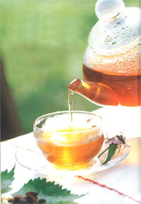 | 自然農園で採れる、とれたてハーブティーを朝食の時にお出しします。