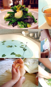 毒素はお食事を通しても入ってきます。 お食事は、水輪ナチュラルファーム自然農園で作られる農薬や化学肥料を一切使わずに育つお野菜を中心に、安心で安全な食材を使い、すべて丁寧に心を込めて手作りをしたお料理を召し上がっていただきます。 たっぷりと野菜を摂り、体の毒を排泄しましょう。 |
