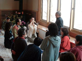 | 八時半から庭に出て木立のなかでの気功です。ここでは太極拳ではなく、調和道丹田呼吸法を含む「時空」です。十時に、またまた旬がいっぱいの朝食を済ませて、十一時半から午後三時まで、車座交流会です。全員が車座になって質疑応答やら討論やらです。これが実にいいのです。腹蔵無く語り合うのもエントロピーの減少に役立つようです。そのあとは皆さんはまた瞑想の時間、私は仕事の時間です。 |