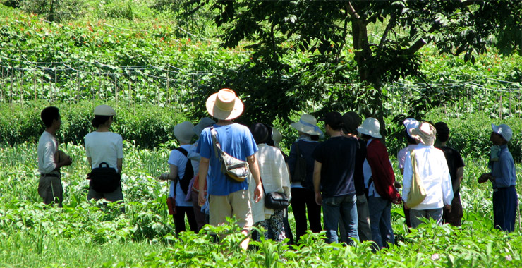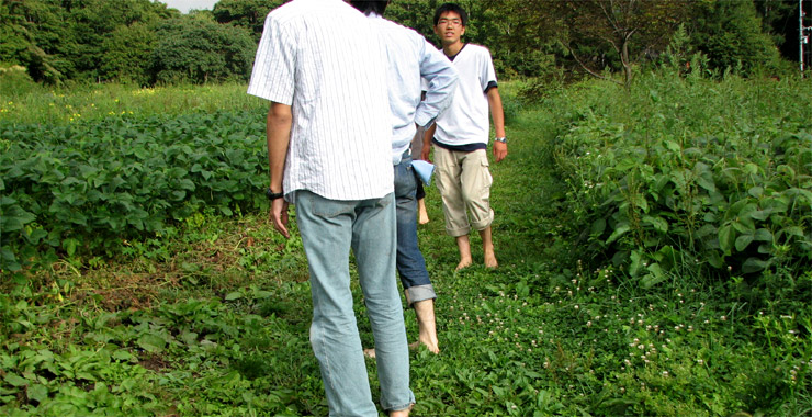 隣接する自然農園や周辺の野山を散策しながら、自分の好きな草・花・木を根のついたまま取ってきて、こけ玉にします。