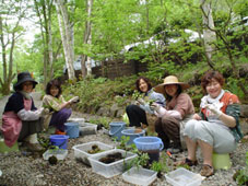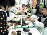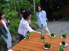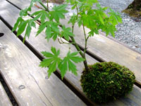 作品はどうぞお持ち帰り下さい(すてきな焼き物のお皿付き。2泊3日で2個〜数個つくります)。 世界に一つだけのこけ玉を、あなたのお部屋や職場、リビング、玄関、食堂に飾ってみてください。 どこでもとてもすてきです。 あなたの感性をフルに使い、土・山野草のいのちに向かい合う作業を通し、感じたこと・気づいたことをみなでわかちあいます。 |