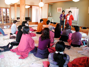 | M・Fさん 素晴らしいワークショップでした。 最終日でのみどり先生のビデオには感銘を受けたと言う以上に驚嘆するほどの内容でのんびりと日々怠惰に生きている自分が恥ずかしくとも思いましたが、言語を絶して比較にならない。本当にご苦労されたと思い、頭が下がって地面に埋まるような思いがいたします。 スタッフの飛田さんによる座禅のご指導いただきましたが、有意義なアドバイスを与えられ、これはひょっとして自分の生活範囲でも自主的に活用できるのではと勇気付けられました。 水輪での滞在は3回目ですが本当に心地良いところで自然があり優しさがあり最高にいい気分でした。皆様どうもありがとうございました。 |