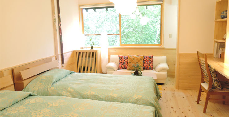 大自然の豊かな信州飯綱高原標高1000メートルのエネルギーフィールドは心と体を癒し、自然治癒力を高めます。大自然に囲まれた施設周辺、自然農園、自然ガーデン散策や自然の中のワークショップは大好評。森林浴など自然を満喫できる環境です。2、気持ちよく過ごせる清潔な総天然木の館内