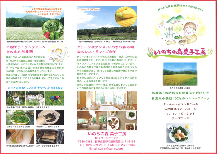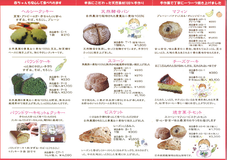 いのちの森菓子工房 ご注文用パンフレット