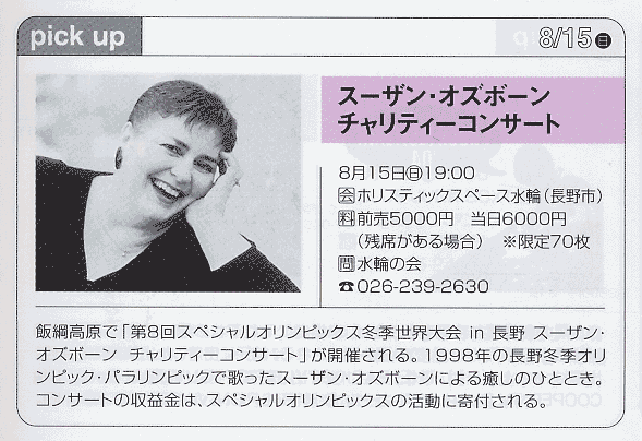 2004年8月号 「スーザン チャリティーコンサート」(月刊ながの情報)