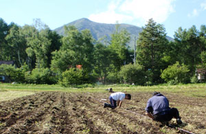 水輪に隣接する5町歩の広大な土地に広がる自然農法の畑でのワーキングスタディも最高です。自己を見つめる事はもちろん、大自然のエネルギーを直に感じながら、草や土に身を任せると全てから解放されて、本来の自分に戻れます。 | |