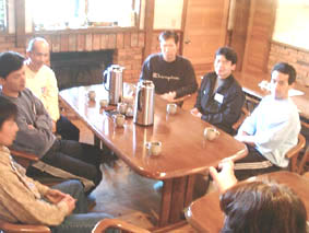 又、目と目を合わせた瞑想も私にとっては非常に勉強になりました。座って目を見ているだけなのに、なにか自分が向かいにして、こちらの自分に話し掛けて来る感じが有り、お前集中力がないぞもっとしっかりしろとか、頭の中に入っては消えました。そうゆう中で頭に浮かんで来たのが、多数の人と動かすには自分自身を変えていかないと駄目だと思いますし、言葉一つにしてもしかる前にもう一度、かみくだいてからしかるとかほめる用に心掛けて行けたらと思います。又研一先生の食事は本当に美味しくいただきました。有難う御座居ました。●M.K
