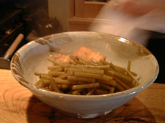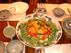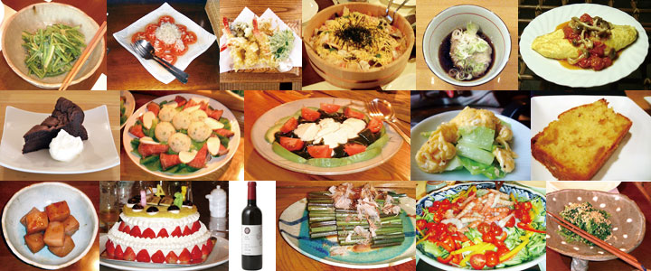 食材水輪ナチュラルファーム自然農園で採れる、自然農法(農薬や化学肥料を全く使用せず、草や虫を敵としない自然のリズムに合った農法)で作られる、新鮮な旬のとりたて野菜を中心に、安心で安全な厳選した食材を使い調理をしています。 献立には、信州新町のこんにゃく芋から作る「手作りこんにゃく」、地元の農家の方が一つ一つていねいに加工した栄村の干しぜんまいを使った「ぜんまいの煮物」、また春には「ふきのとう」「たらの芽」「山ぶどう」「つくし」「よもぎ」等の山菜が豊富に採れ、秋にはきのこ狩りへ行き、リンゴ畑からは甘酸っぱい香りが漂い、落ち葉の散る頃には野沢菜漬けが行われます。 お料理も和食・洋食・中華に止まらず、エスニック・イタリアンなど幅広いジャンルのお料理を作っています。また水輪オリジナルの春巻きやピザ、菜食の方も安心して召し上がれる「豆乳シチュー」(自然の農園の農薬不使用の大豆から作る豆乳)などレパートリーは豊富です。 |