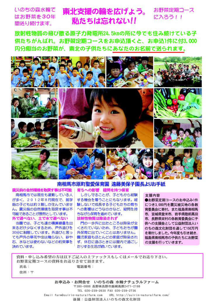 あなたの3,000円分が、東北の子供たちのお野菜支援にまわります。