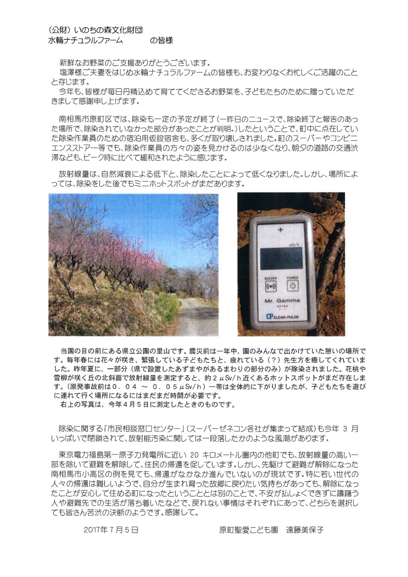 2017/7/5 お手紙を頂きました。ありがとうございます。