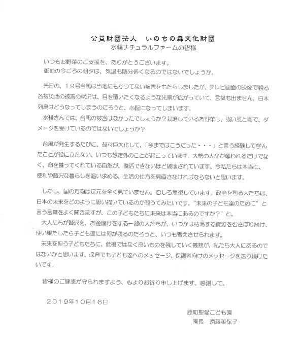 2019/10/16 お手紙を頂きました。ありがとうございます。
