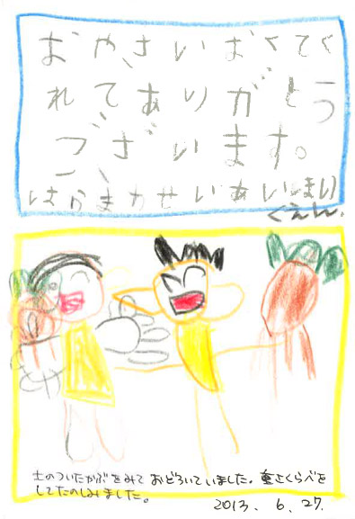 2013/6/27 子供たちからおはがきを頂きました。どうもありがとう!