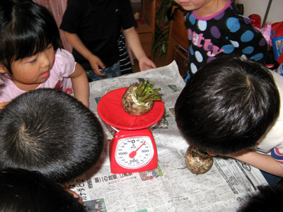 箱をあけると大きな大根とカブが入っていてみんな大喜びでした。