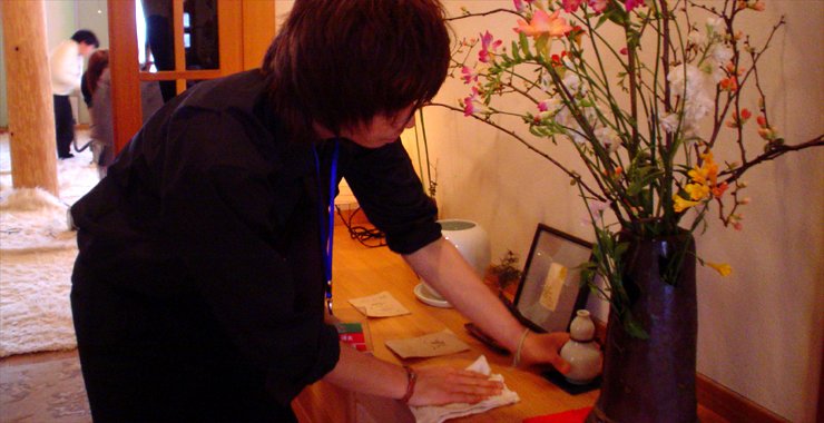 11 動の呼吸と動の瞑想(ワーキングメディテーション) 担当セラピスト:飛田 航介 いのちの森水輪では心を静寂にすることを学んでおり、お客様にもこの日常の作務(清掃)を通じて自室や会場を美しく整え、清々しい心 で「今ここ自己」を体験して頂き、心の静寂さに出会われている方も多く、多くの参加者の方から喜ばれています。高原の気の満ちた静けさの中、生活の基本か ら15〜30分程度の清掃を通して心と体を整えるワーキングメディテーションを取り入れております。(プログラムの都合上、時間のとれない方はお申し出下 さい。 ワーク(食事を作ったり、お部屋を掃除したり、畑で野菜を作ったり、トイレやお風呂掃除をしたり)をすることは、人間の生活の基本であり仕事と同じように生きていく上で大切な事です。また、スポーツジムに通って特別な運動をすることだけが体を動かす運動ではなく、生活や仕事の中で当たり前の体の動きがあり、それが私たちの細胞を活性化してくれます。生活自体が、健康な体と心をつくるものであることを学びます。生活の中に幸せの宝物になる事が一杯あります。今ここに集中できる自分作りを目指します。 |