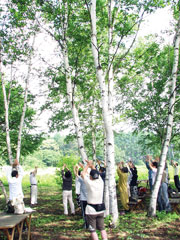 高原の白樺の中で