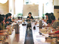 | お茶や作法や禅(座禅)を通して日本文化の美しさや深さに触れていきます。山登り、買い物、外食、温泉入浴、名所巡りなど、遊びも仲間とのコミュニケーションを深めるよい機会です。 外国から来る方々のサポートをすることで、異文化に触れ、より広い見識を身につけることができます。金銭出納帳をつけることで、金銭感覚や金銭の自己管理も学びます。 |