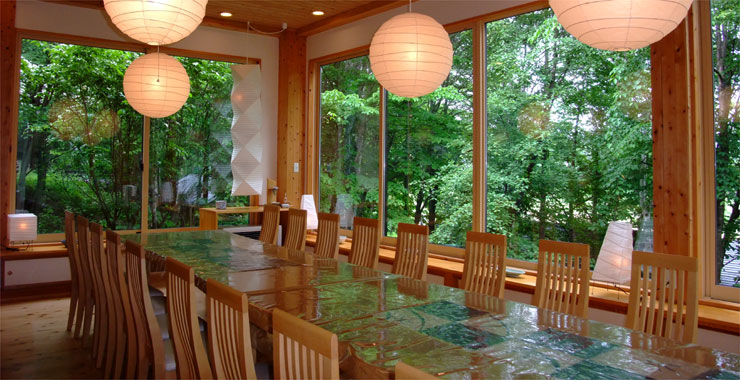 エコロジーに配慮された杉と檜の総天然木の施設、やわらかな光を放つ手作り和紙の照明、純毛100%の絨毯、ネパール製の厚手の手織りマット、クローゼットの扉は絹織物のクロスを使用しています。